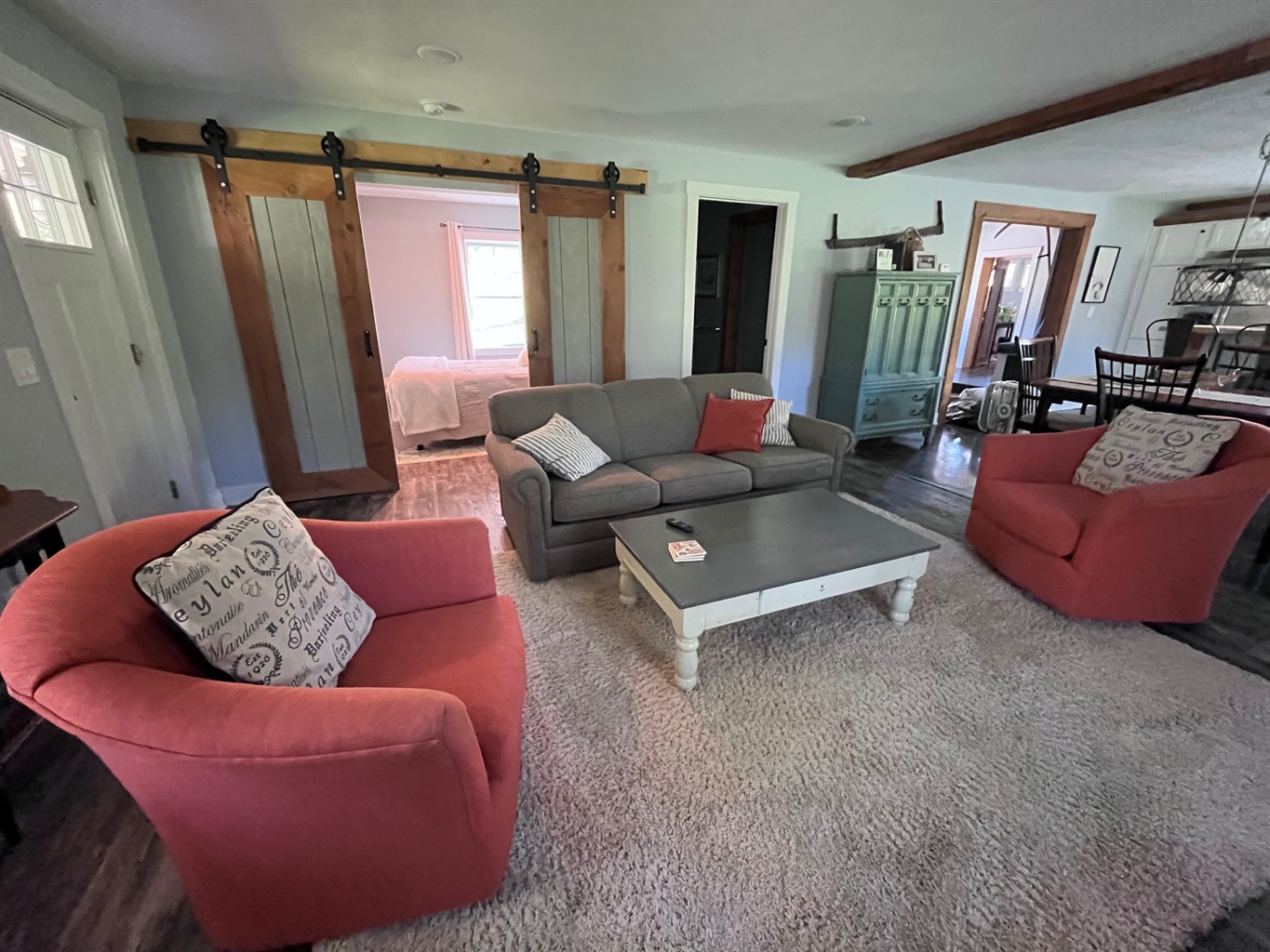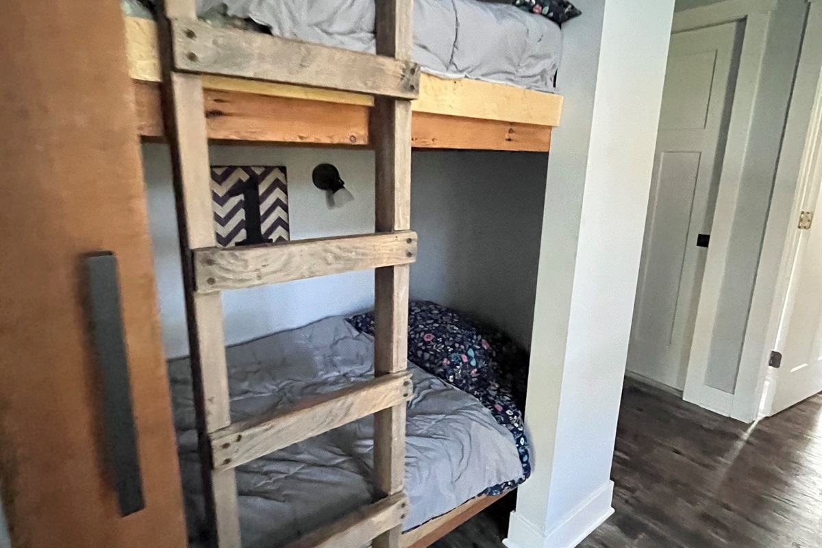 Completely renovated with modern farmhouse style, this 3-bedroom home sleeps up to 8 guests comfortably. Each bedroom features a queen bed, plus an open loft landing with two twin bunk beds — perfect for kids or extra guests. Two full bathrooms make it ideal for families or couples traveling together.